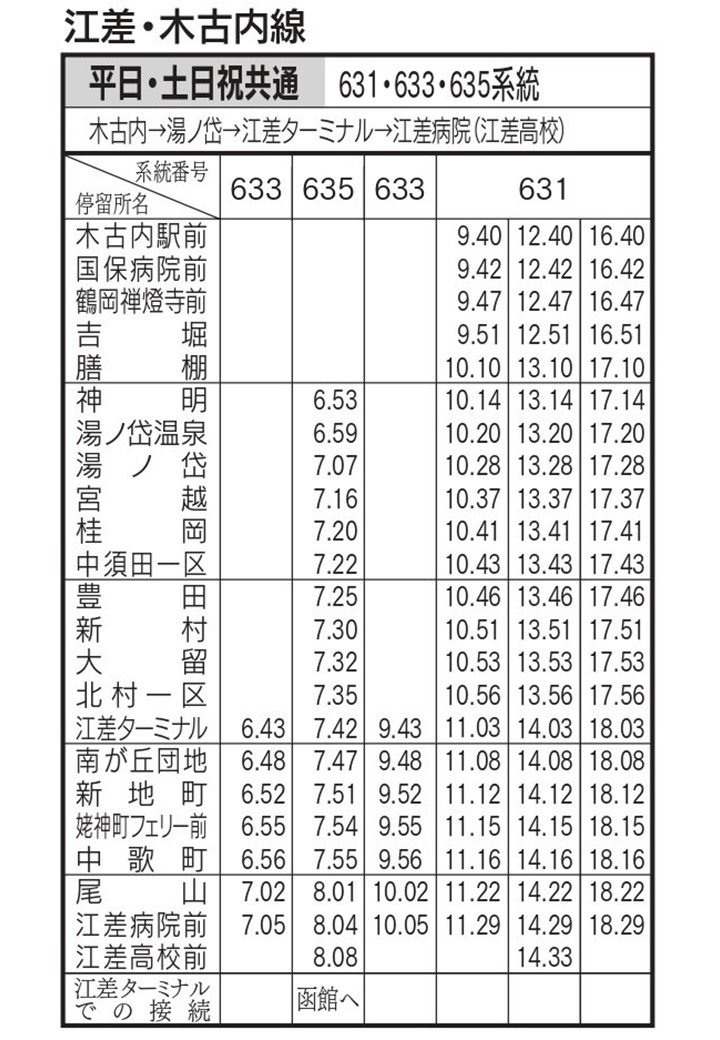 江差町⇔木古内町(631・633・635系統)
