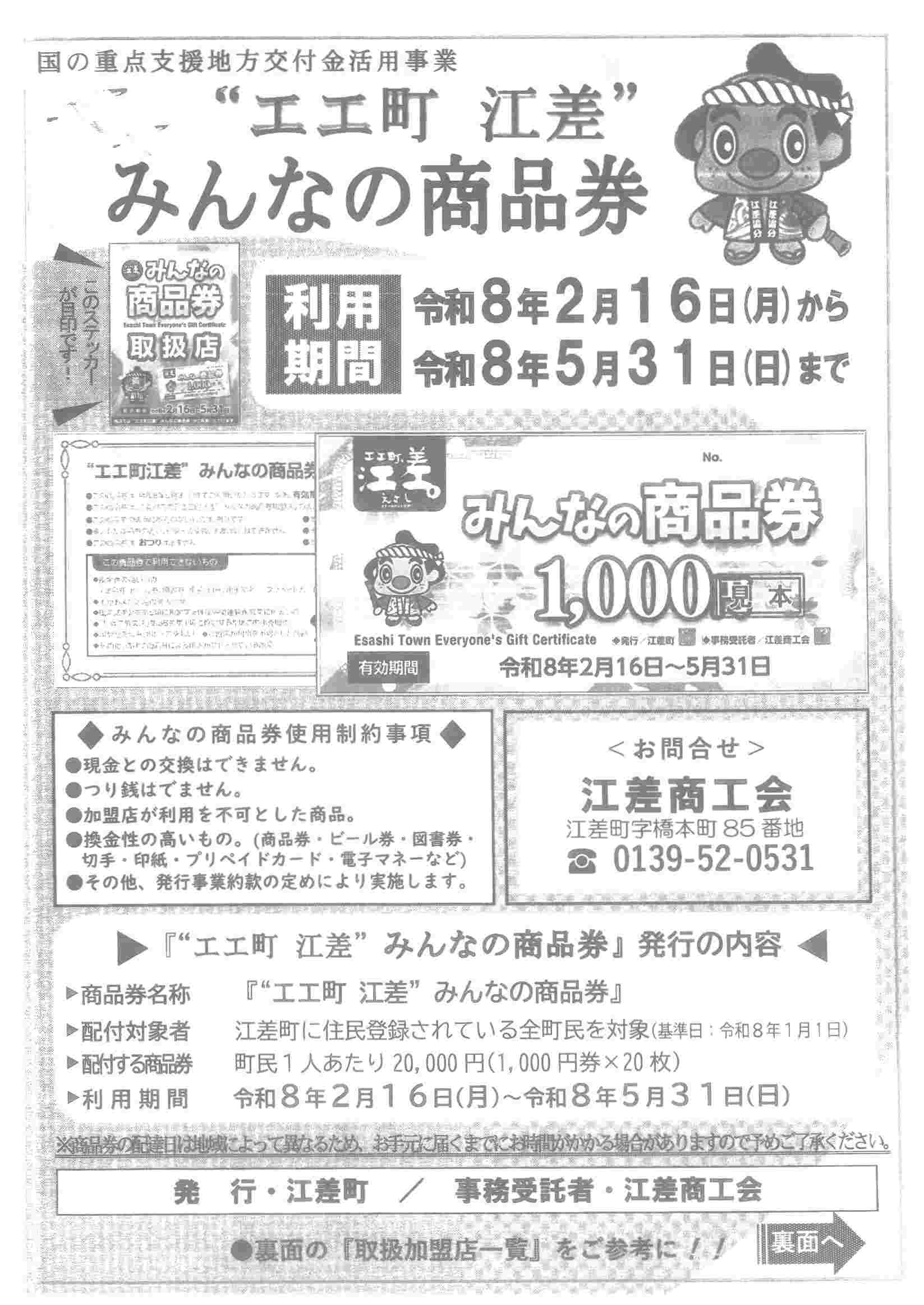 配布対象者江差町に住民登録されている全町民を対象(基準日:令和8年1月1日)