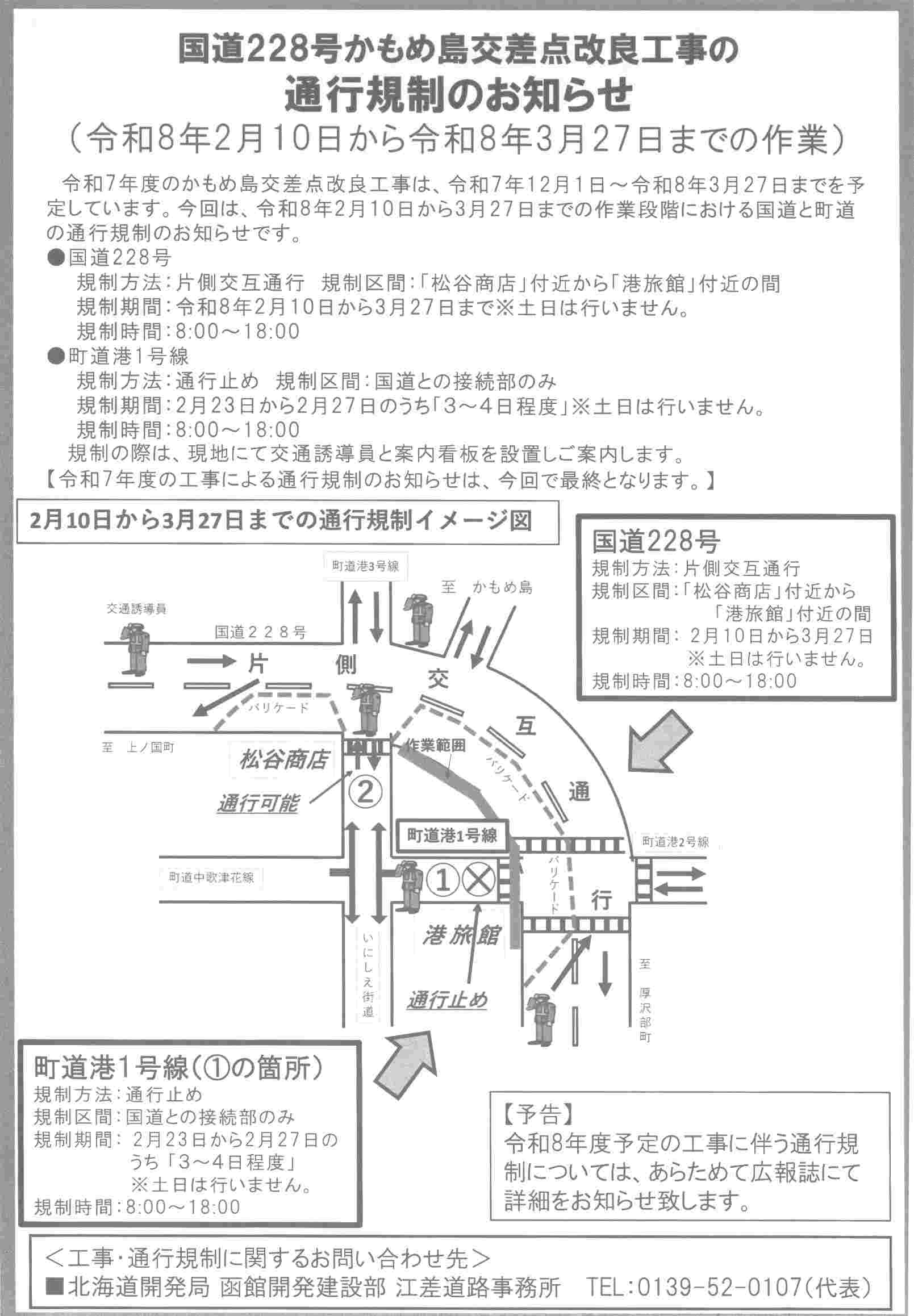 国道228号かもめ島交差点改良工事の通行規制のお知らせ