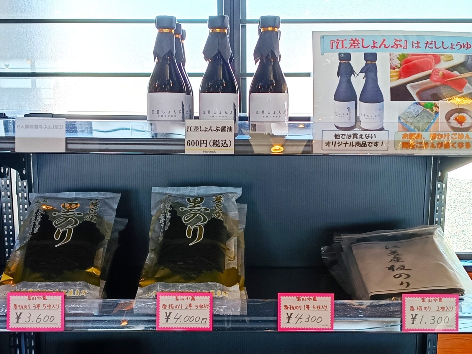 さらに、同じく「お土産・お食事Horizon」では、江差オリジナルの**「江差しょんぶ醤油」**も販売されています。