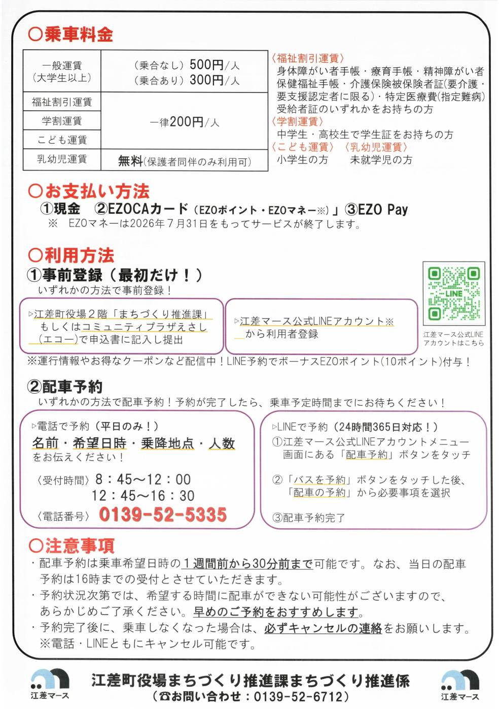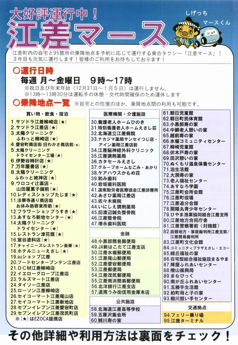 江差マースにおいても使用できなくなりますので、あらかじめご了承ください