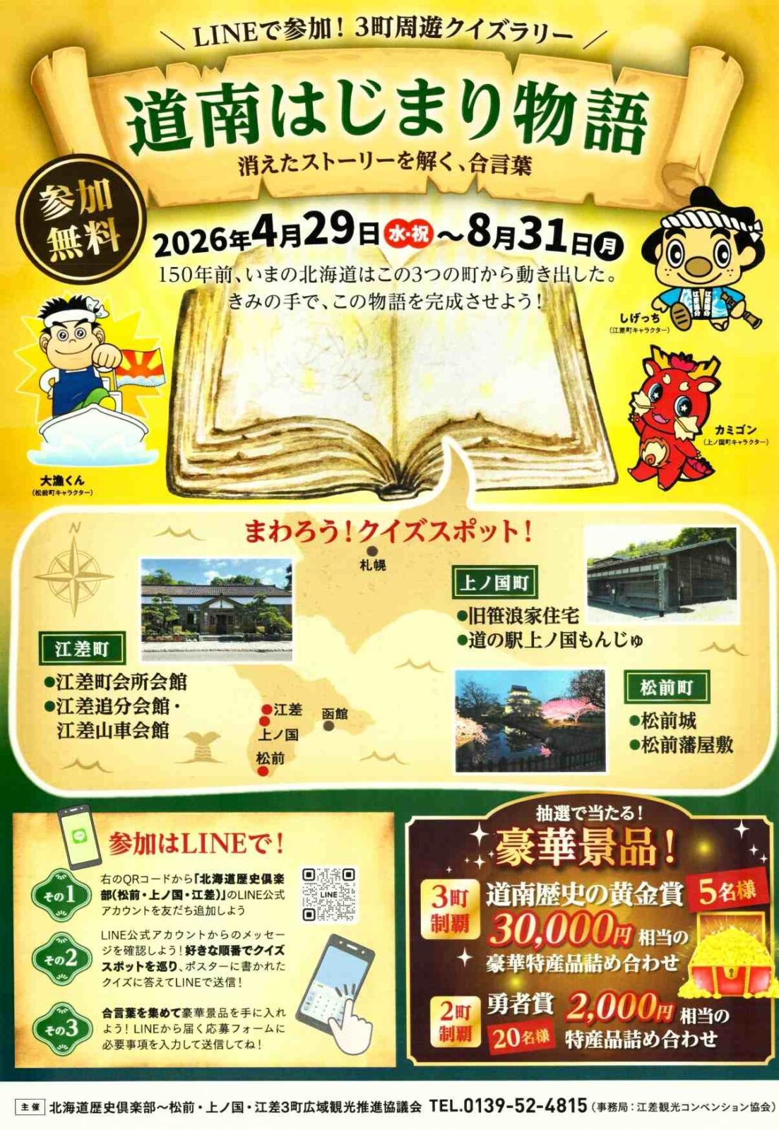 江差町・上ノ国町・松前町を巡り、各スポットに設置されたクイズに挑戦。