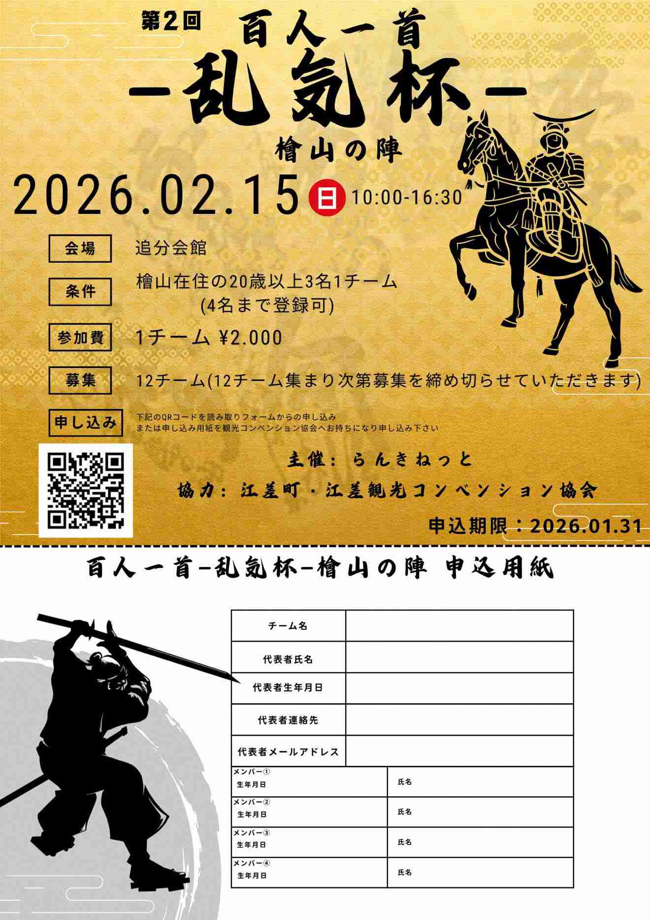 | 応募方法 | 下記チラシのQRコードからお申込み または江差観光コンベンション協会 電話 0139-52-4815 からも申し込み出来ます。 |