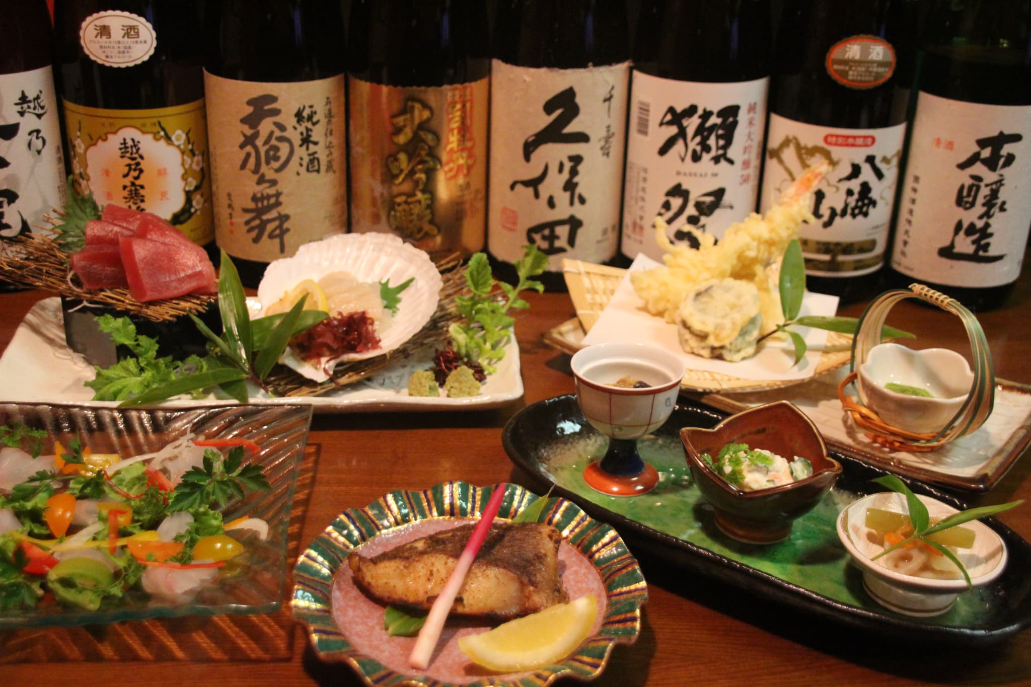 You can enjoy an alcoholic beverage that matches the cuisine, as we have a wide range of sake and potato shochu.