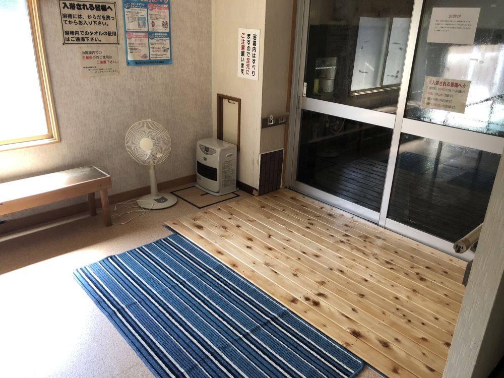 We became a daytime bathing facility under town management in 2006. The hot spring water quality is basic (weakly alkaline, hypotonic, and high temperature) and is good for beautifying the skin. There is one bath each for men and women and full-body showers are also available. The facility was formerly only for the elderly and there are robust handrails throughout. Additionally, footbath is included within the facility.