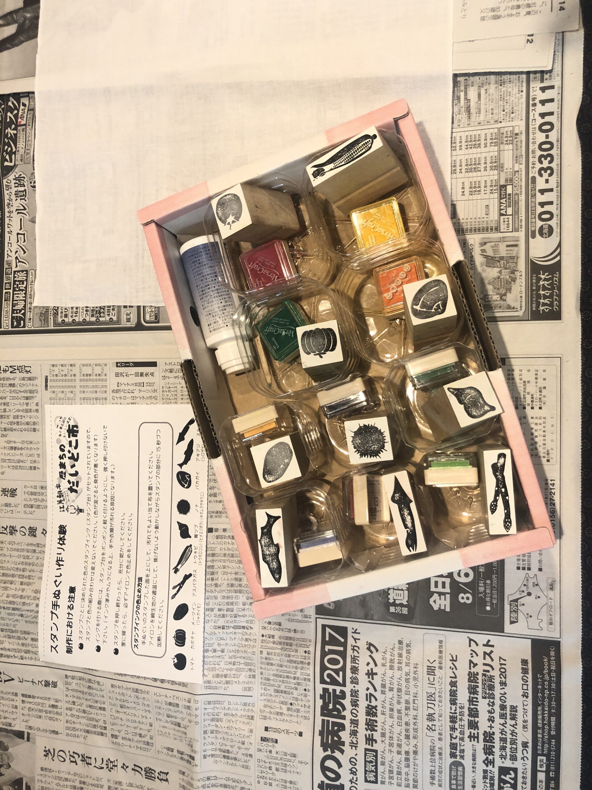 1.Choose the stamp you like and press it on the Tenugui towel.