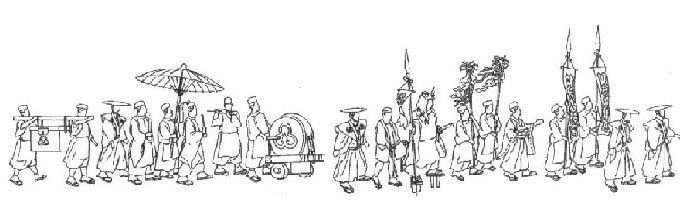 → Stays at the head of the procession, and guards from people entering the procession.