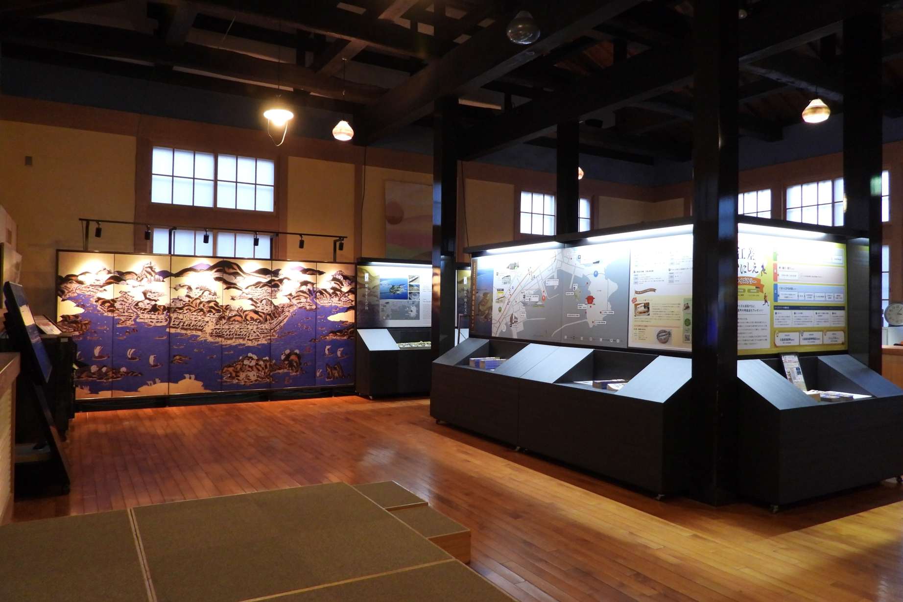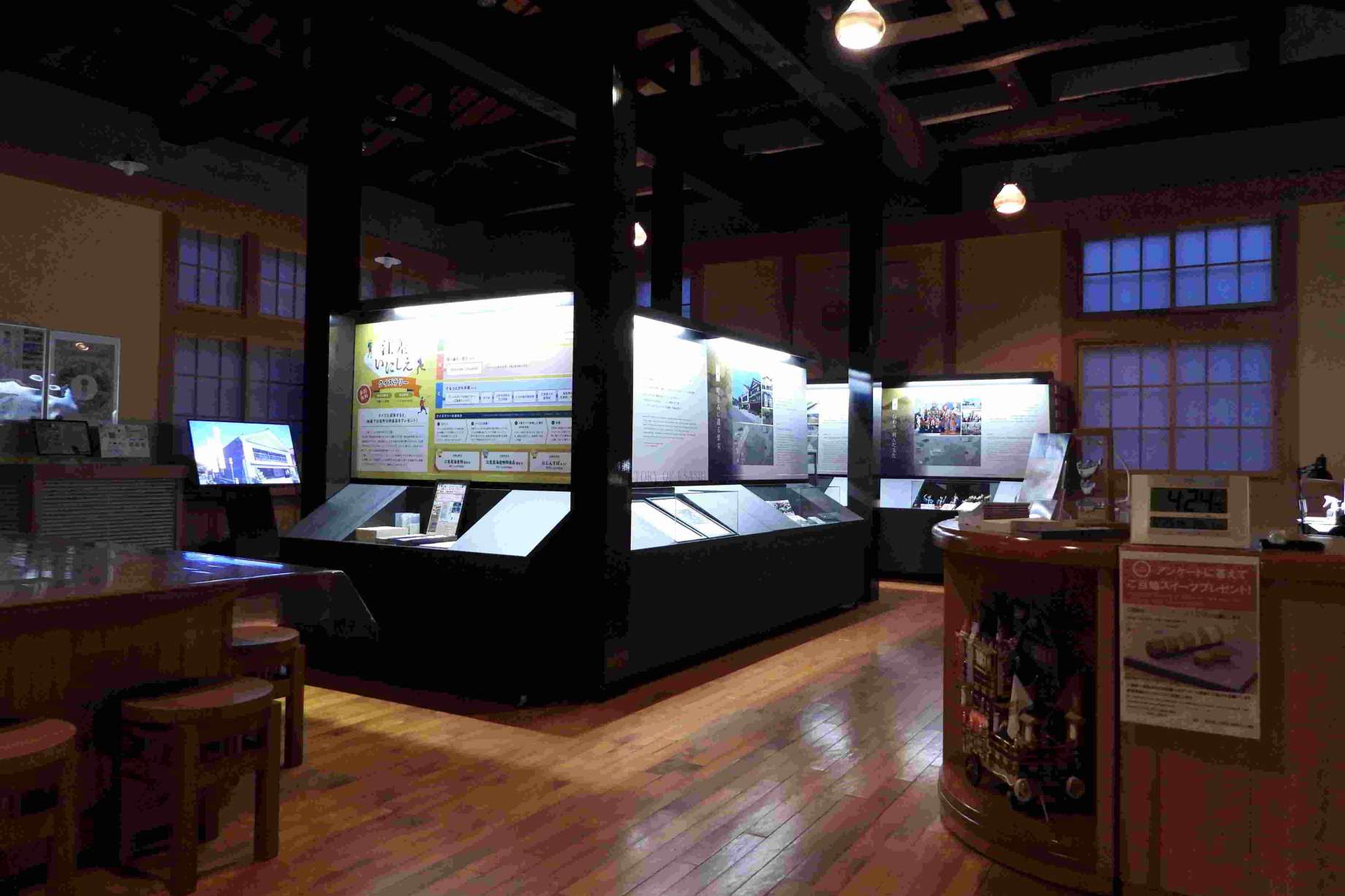 現在は、日本遺産「江差の日本遺産ストーリー」を紹介するパネルやショーケースを設置し、町の歩みをわかりやすく展示しています。