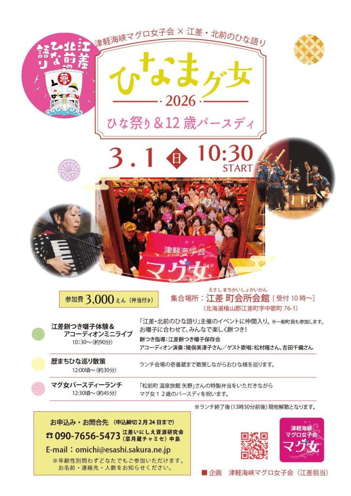 江差いにしえ資源研究会 ☎ 090-7656-5473 (皐月蔵チャミセ) 中島 E-mail: omichi@esashi.sakura.ne.jp ※年齢性別問わずどなたでもご参加いただけます。 お名前・連絡先・人数をお知らせください。 |