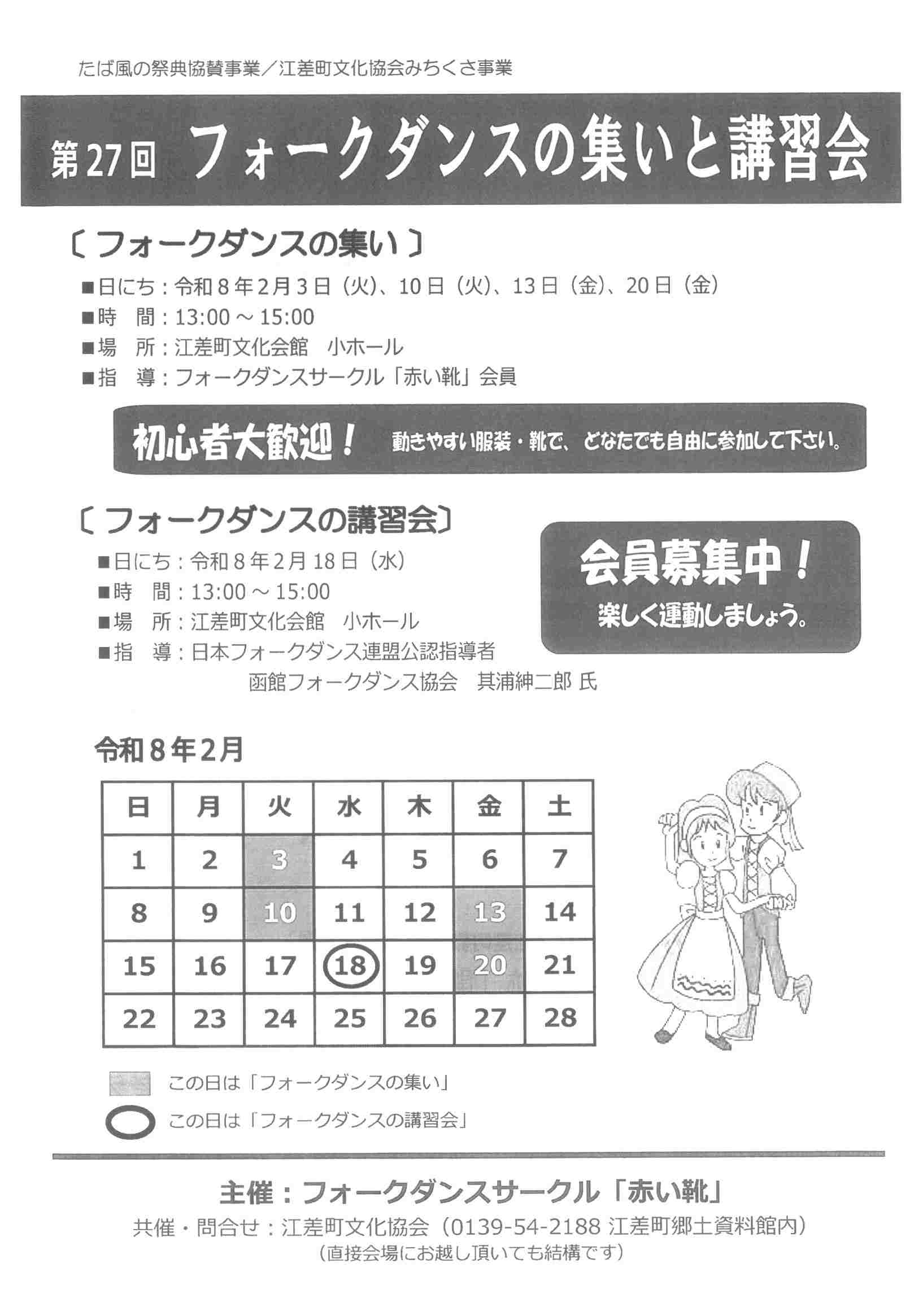 | 指導 | 日本フォークダンス連盟公認指導者 函館フォークダンス協会 其浦紳二郎 氏 |