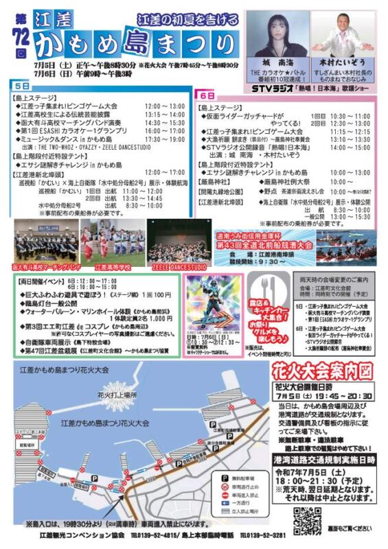 ホーム 観光・イベント - お祭り・イベント 観光・イベント お祭り・イベント お祭り・イベント 3大祭り イベント フォトコンテスト 3大祭り 江差かもめ島まつり(7月) 姥神大神宮渡御祭(8月) 江差追分全国大会(9月) イベント 江差追分全国発表会(4月) 春の江差いにしえ夢開道(花嫁行列)(5月) 江差夜市(えさしよいち)(6月~10月) 江差マリンフェスタリバイバル(6月or7月) 江差朝市・歴まちのだいどこ市(6月~10月) 江差たば風の祭典(2月) 冬江差 ”美味百彩” なべまつり(2月) 全道北前船競漕大会(7月) 江差町産業まつり(9月) フォトコンテスト 江差の夕陽フォトコンテスト 江差姥神大神宮渡御祭フォトコンテスト