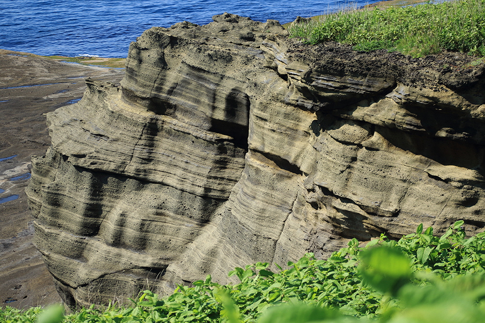 江差で見ることができる地層 (遠くで見るだけにしましょう)
