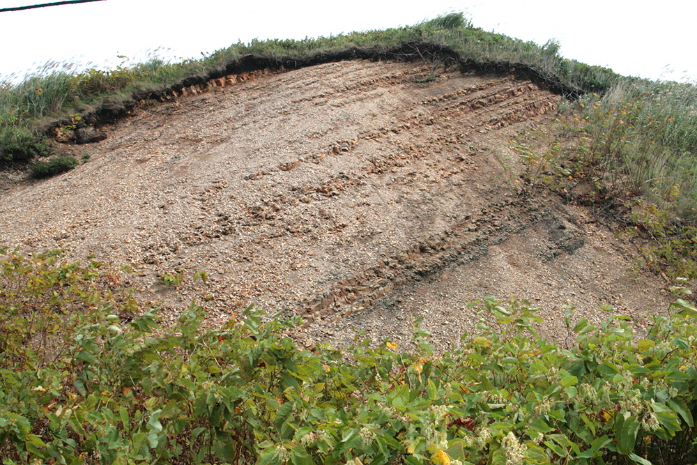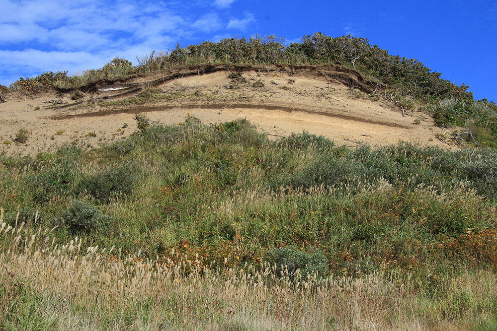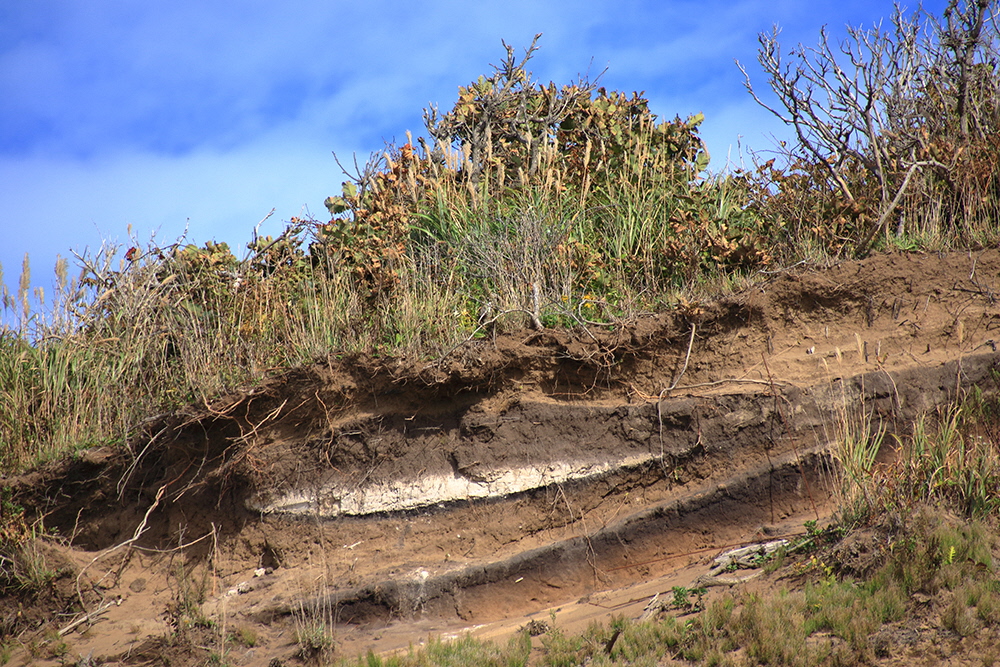 海のほうから風で飛んできた砂が積み重なってできた地層。