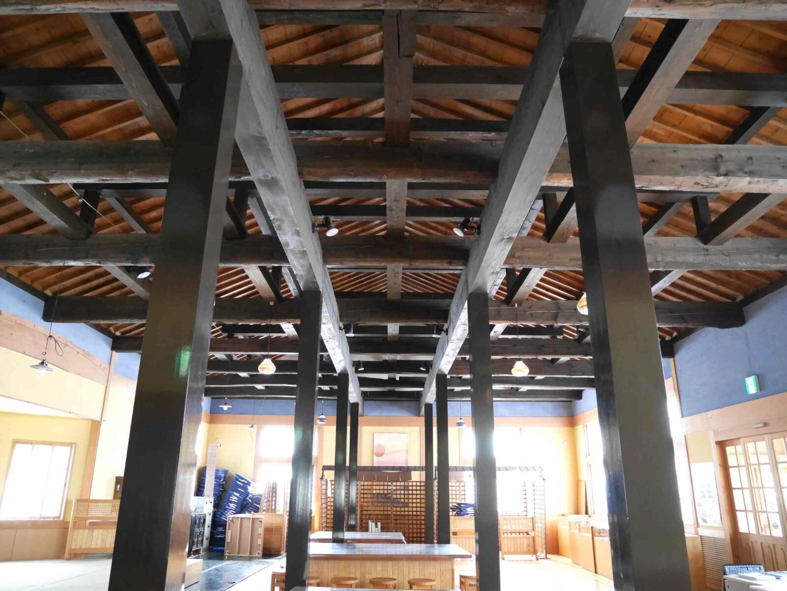 旧庁舎で使用された材料も利用し復元された小屋組