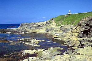 さらにまた、白い灯台の下の中腹に昔はちょうど瓶子岩に匹敵するような形と大きさの岩がありました。これは江差で義経のお供をしていた弁慶が、この地で本州から届けられる情報を待ちながら仲間と一緒に戦時に備えてトレーニングした時に、力比べをし、巨岩をそこまで運んだものだから『弁慶の力岩』と呼ばれていました。