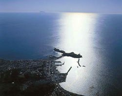 鴎島から奥尻は良く見えます。左にはかつて大きな噴煙を上げていたという大島も眺望されます。北海道に登場する義経には二つの姿があります。善人義経と悪人義経であります。どちらかというと、北海道を二分する日高山脈を境に、東は悪人、西は善人の義経像が浮きあがります。悪人説は多分心ない和人がアイヌの人々をだました話が発生の根底にあるのでしょう。