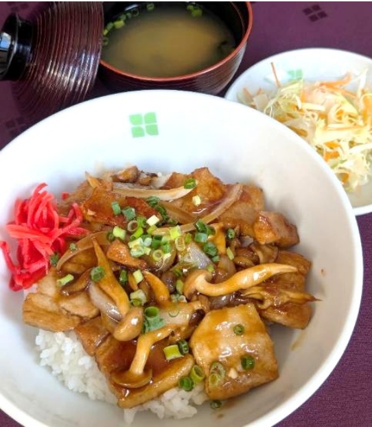 ・キノコ入り豚照り丼