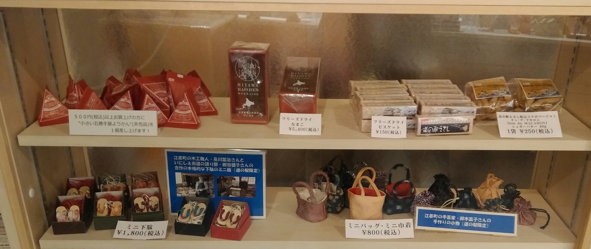 「道の駅江差」の売店が入る施設は、8畳ほどの広さしかなく、隣に建つトイレよりも小さい建物です。全国の道の駅を巡られたお2人の方から、売店の建物は、江差よりも小さい所はなかったとお墨付きをいただいたこともあり、「小さい」ことを逆手に取り、「自称日本一小さい道の駅」として、小さいながらも満足度NO.1の道の駅を目指し、リニューアルしました。