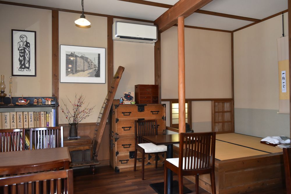 酒や米を扱う商店だった関川家の建物を利用し、天井の梁などはそのままに、